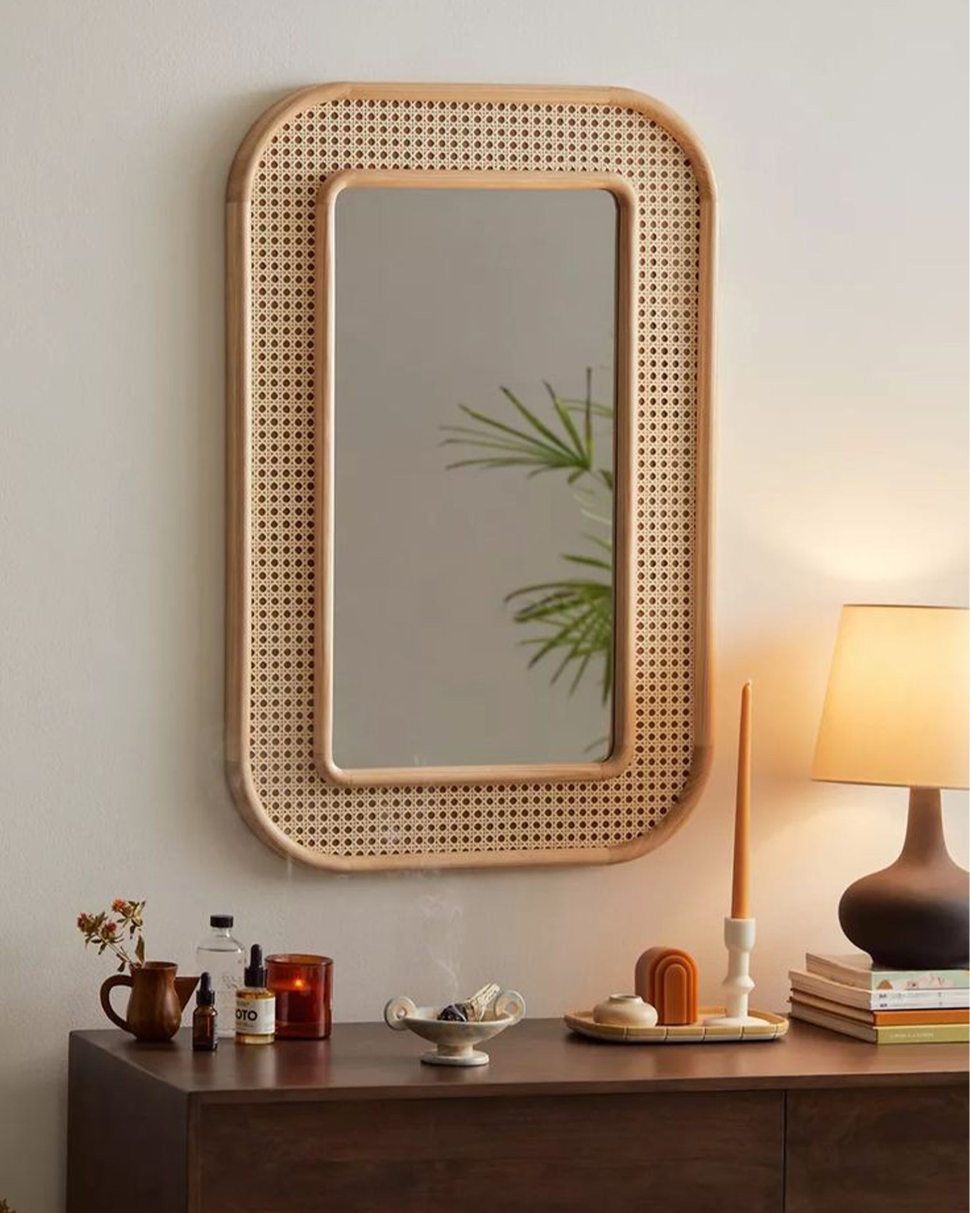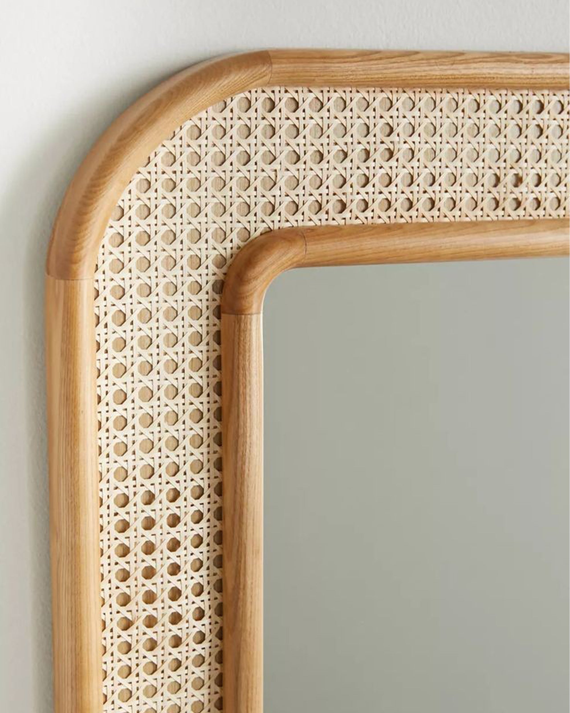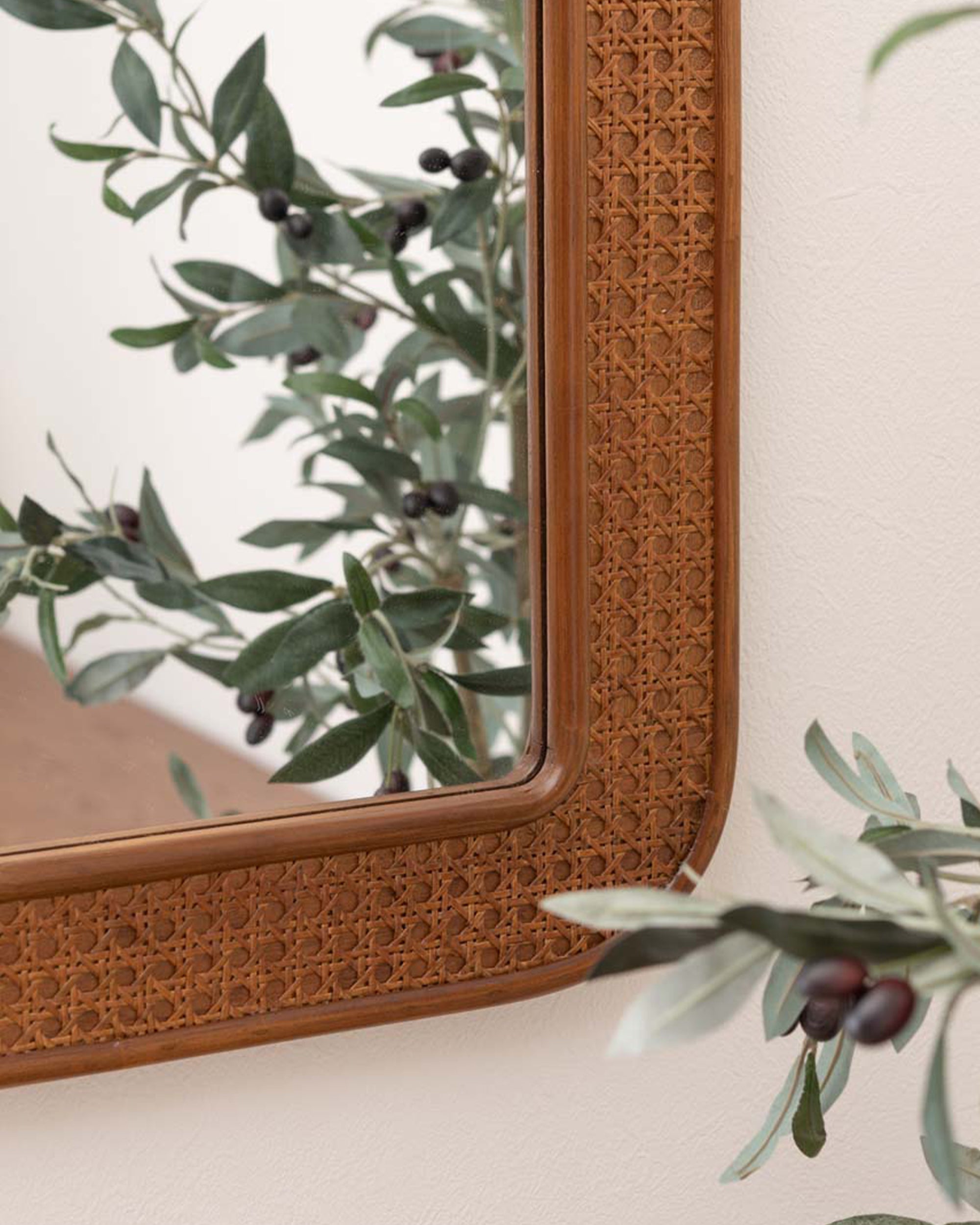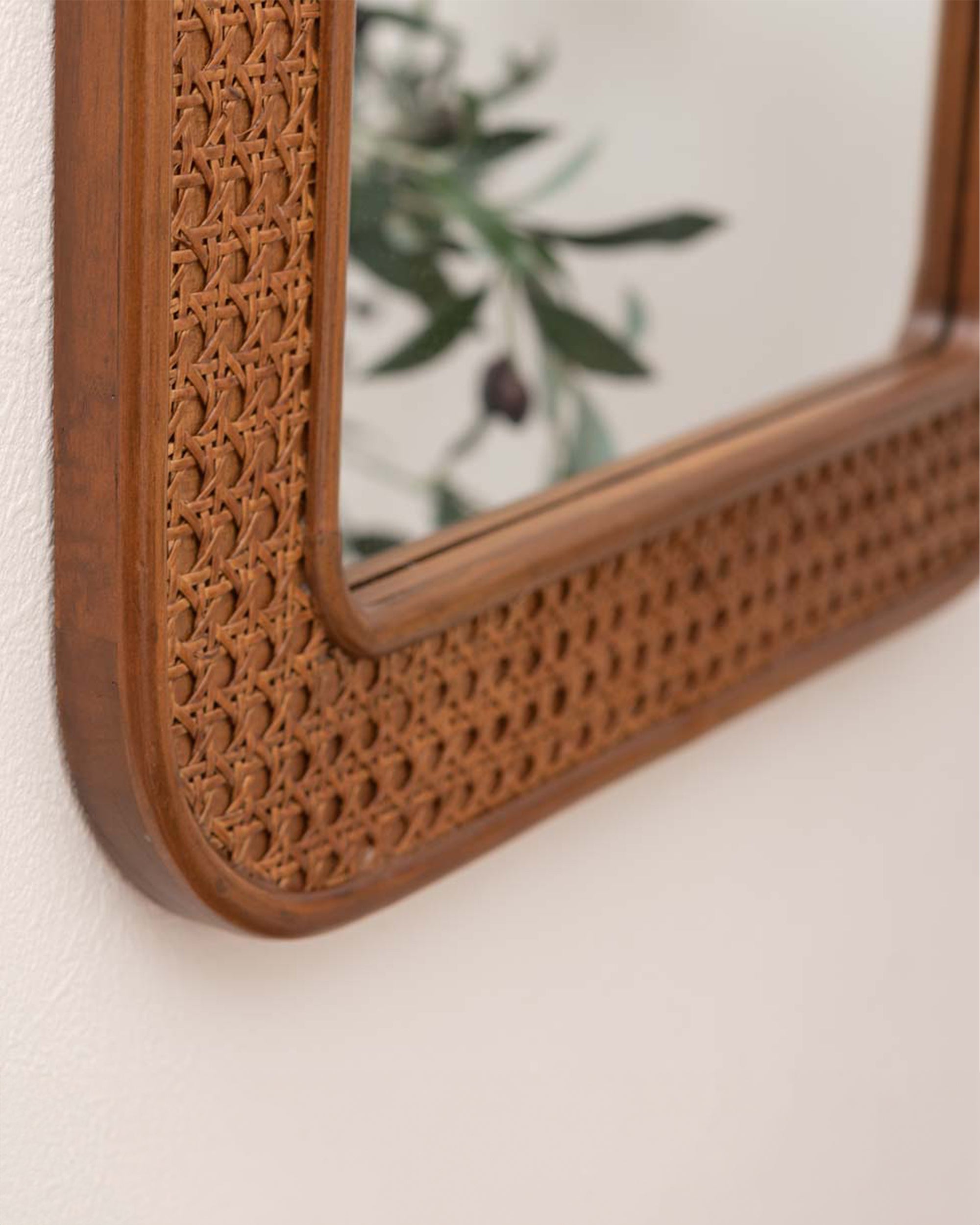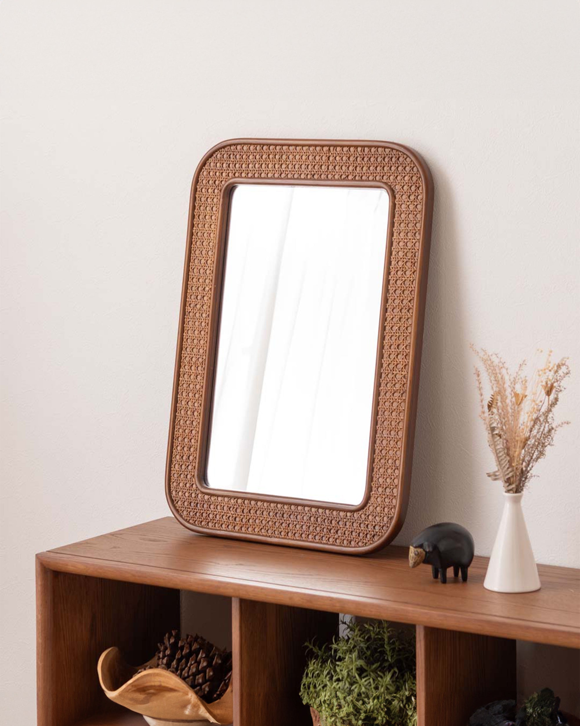 Meftun Ayna, tasarımında yuvarlak kenar dönüşlerini ve klasik hazeranın örme sanatını buluşturarak kendine özgü bir tarz yaratıyor. Kare hazeranın dokusundaki özgünlük, aynanın tasarımını zenginleştirirken aynı zamanda zarif bir estetik sunuyor. Bu özel tasarım sayesinde Meftun Ayna, evinizin herhangi bir köşesinde veya koridorunda mükemmel bir odak oluşturabilir.