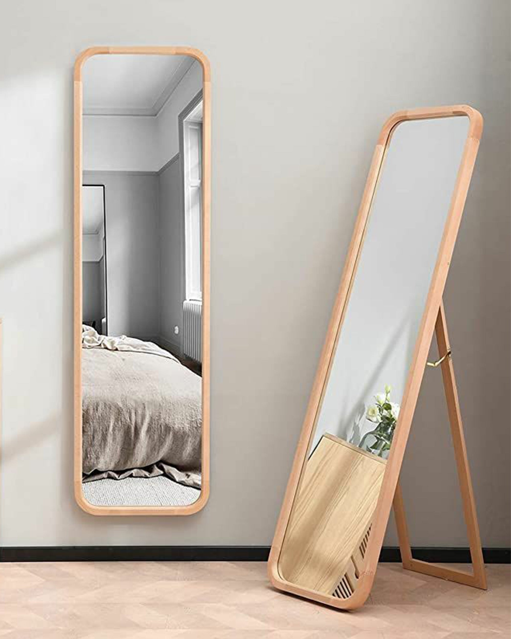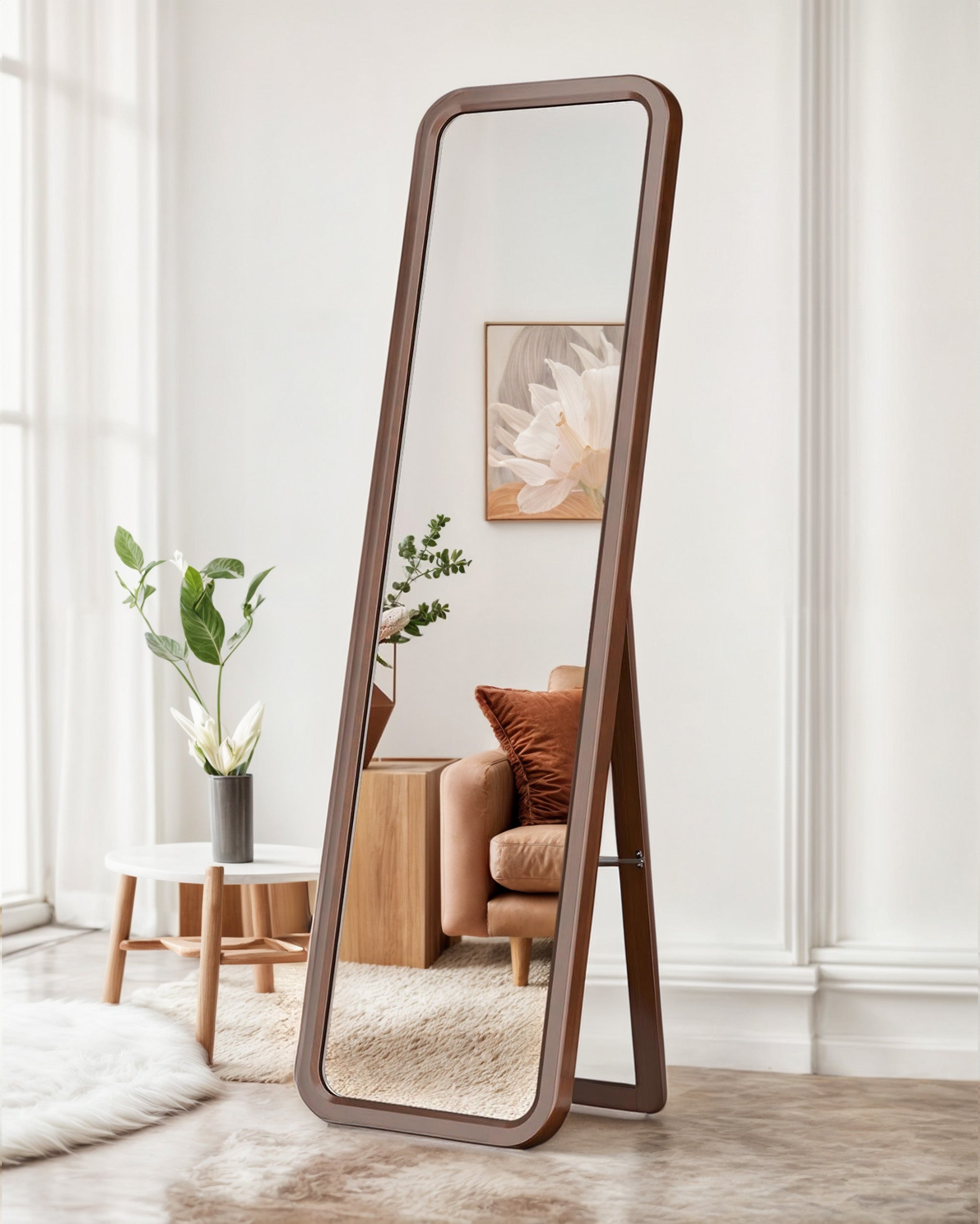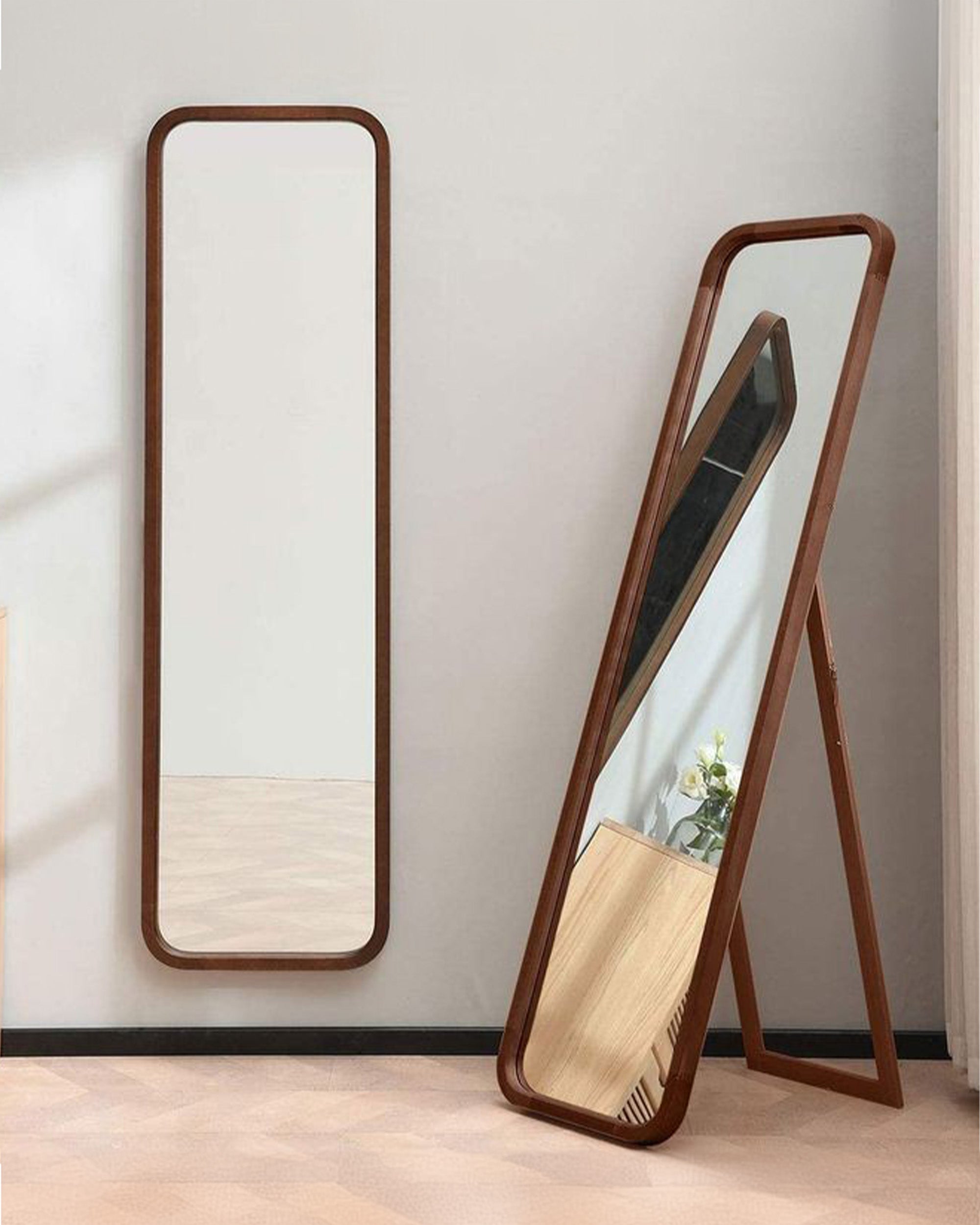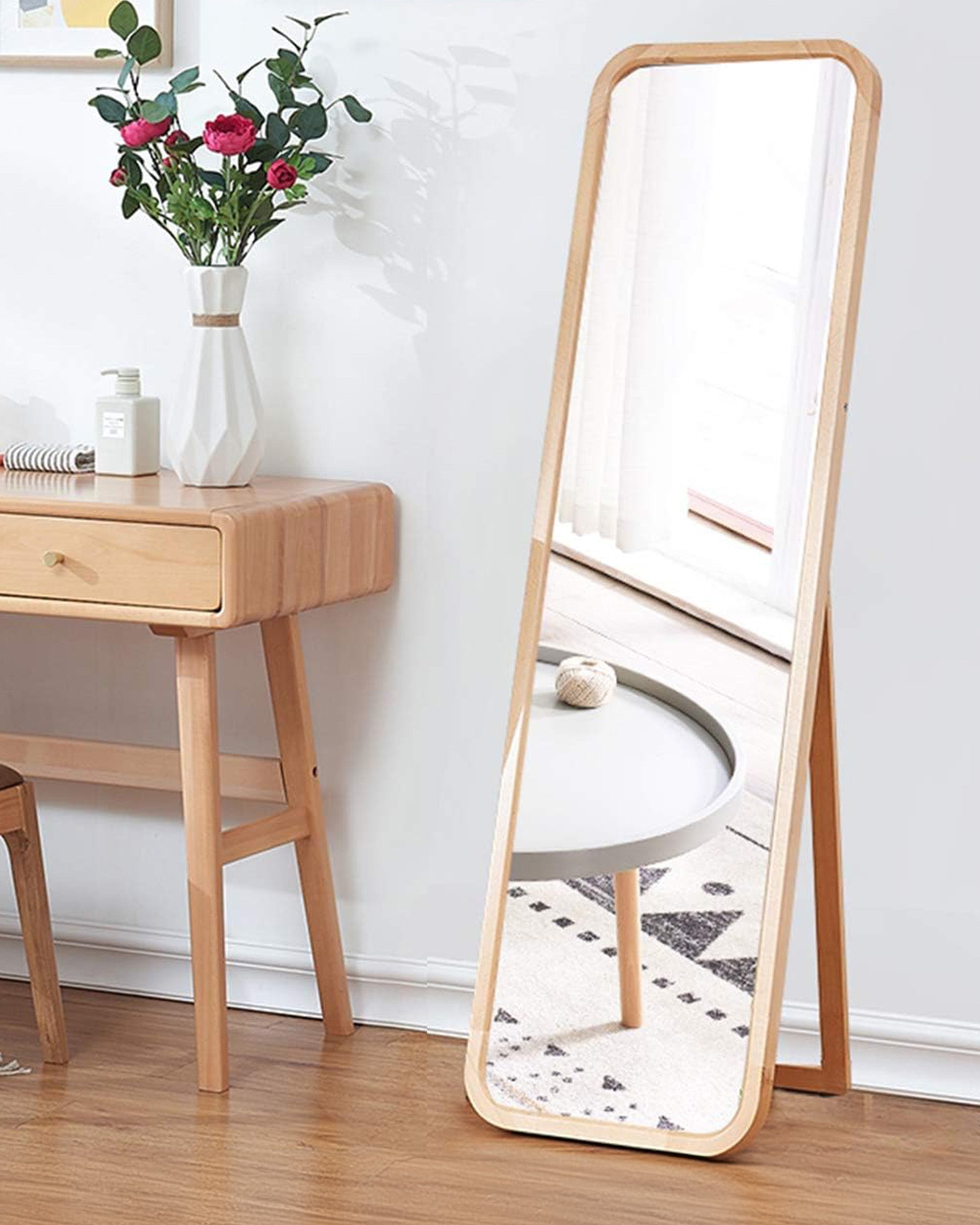 Zümra Ayna, yuvarlak kenar dönüşleri ile dikkat çeken özel bir tasarıma sahiptir. Bu ayna, yuvarlak hatlarıyla mekana sıcaklık ve zarafet katarken, aynı zamanda katlanılabilir ayak detayıyla da çok yönlü kullanım imkanı sunmaktadır.