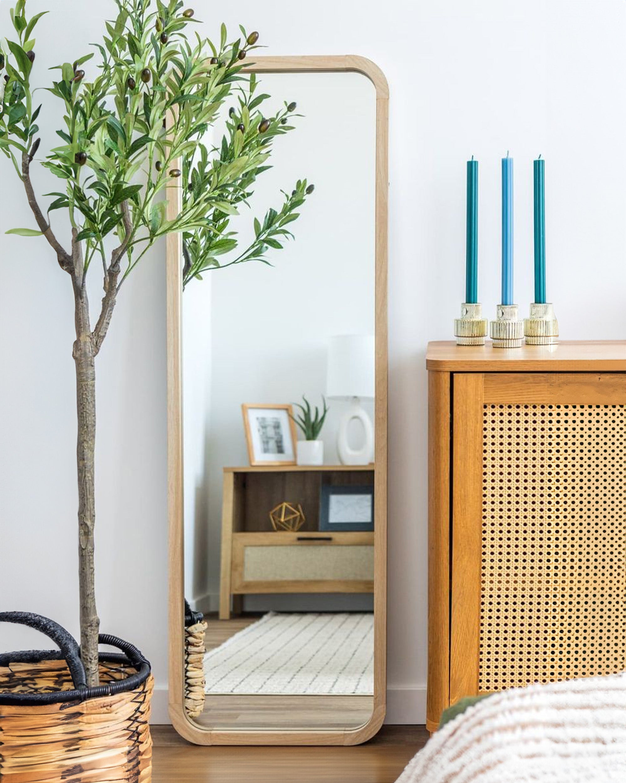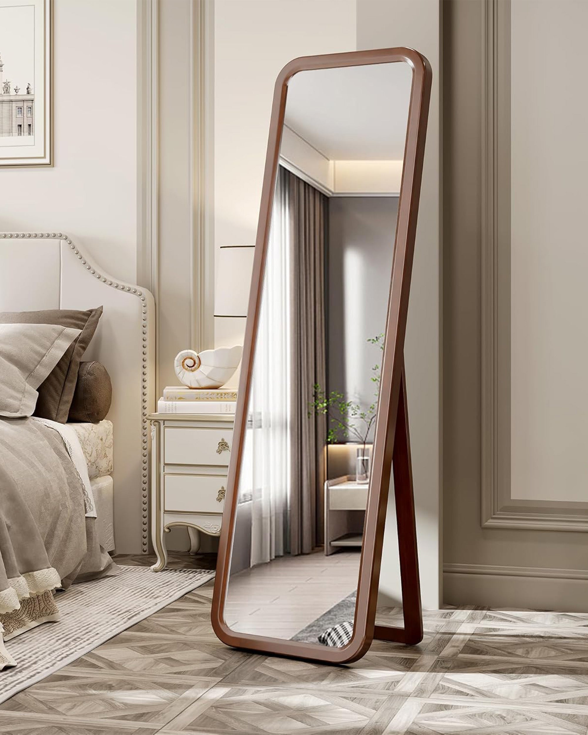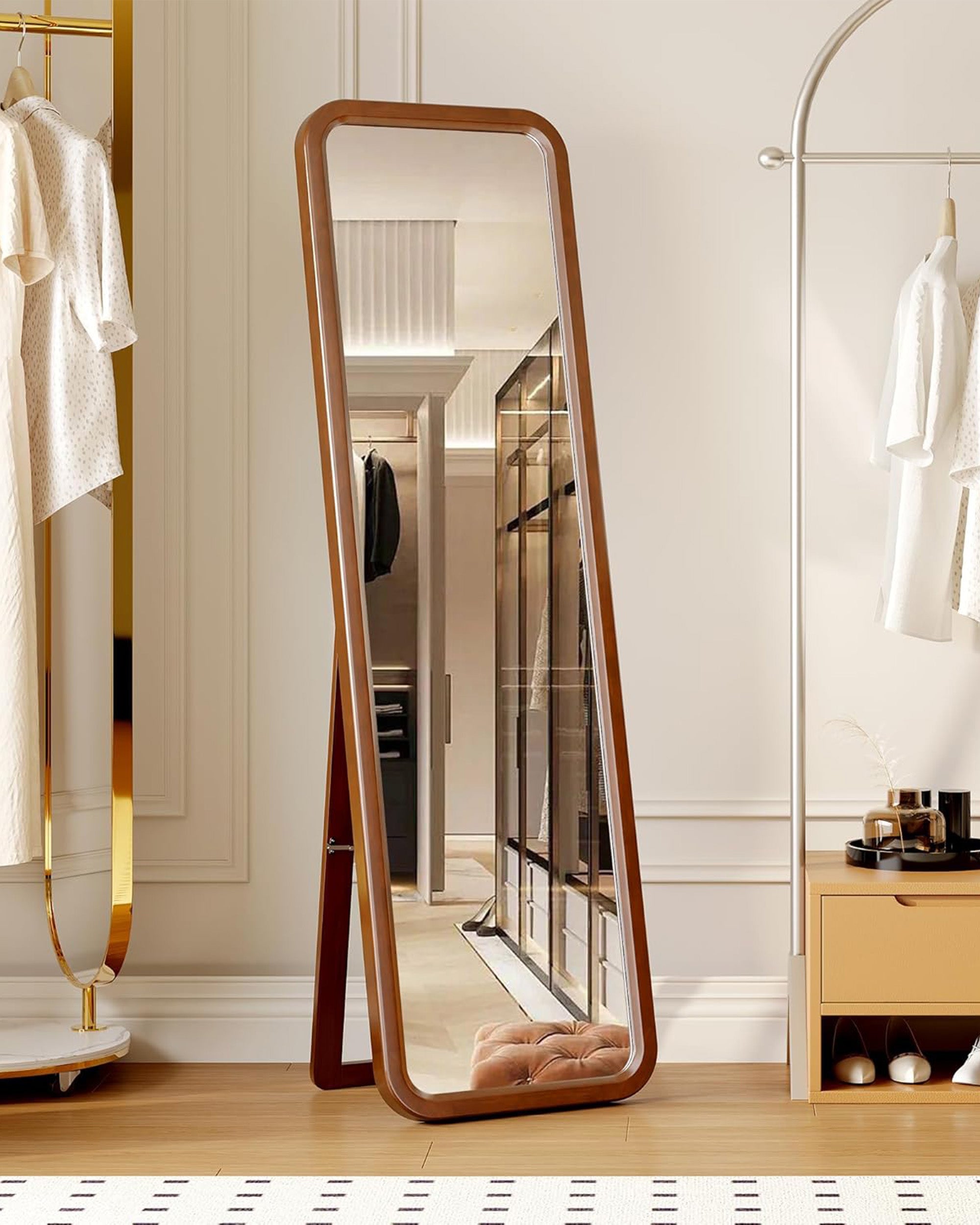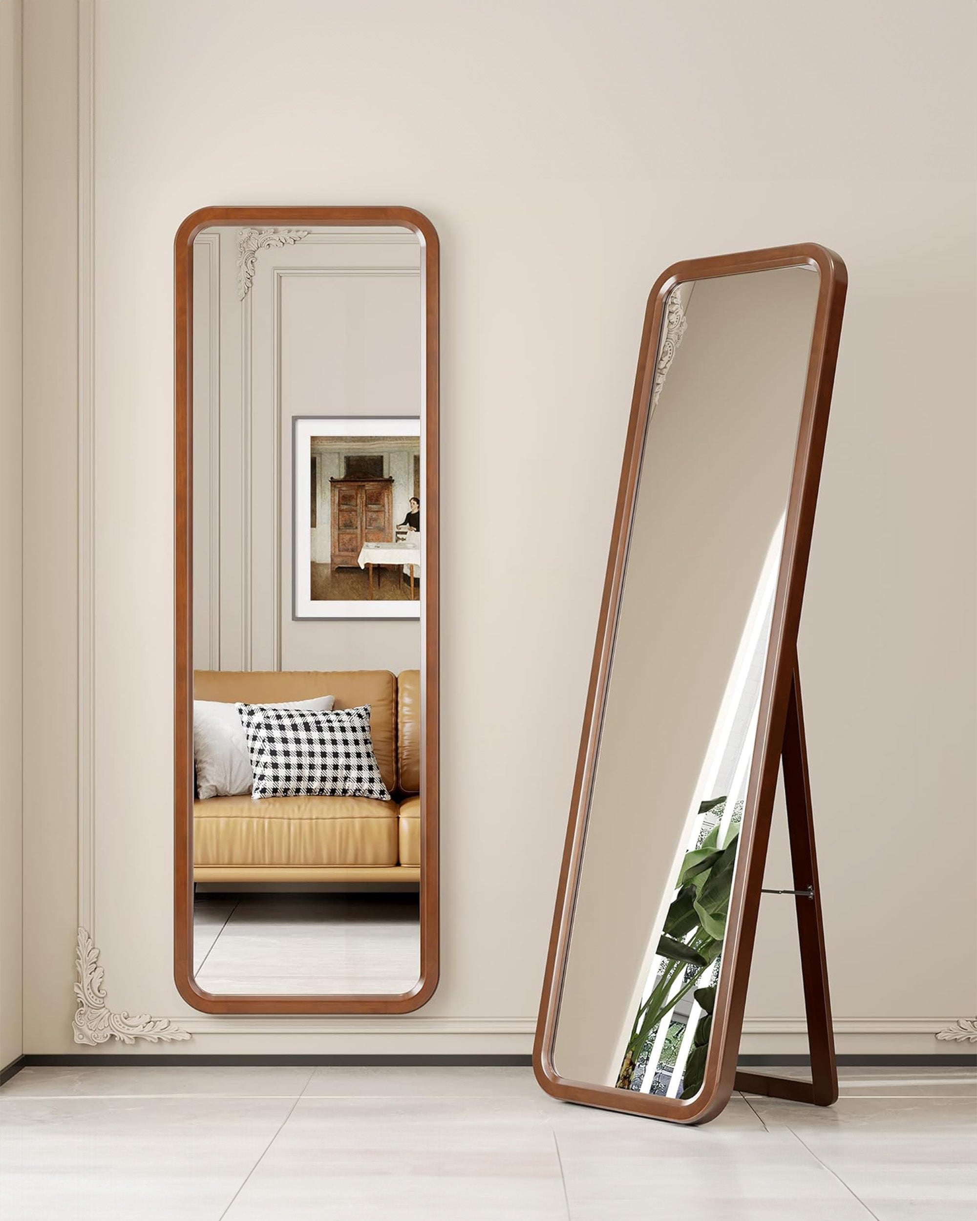 Zümra Ayna, yuvarlak kenar dönüşleri ile dikkat çeken özel bir tasarıma sahiptir. Bu ayna, yuvarlak hatlarıyla mekana sıcaklık ve zarafet katarken, aynı zamanda katlanılabilir ayak detayıyla da çok yönlü kullanım imkanı sunmaktadır.