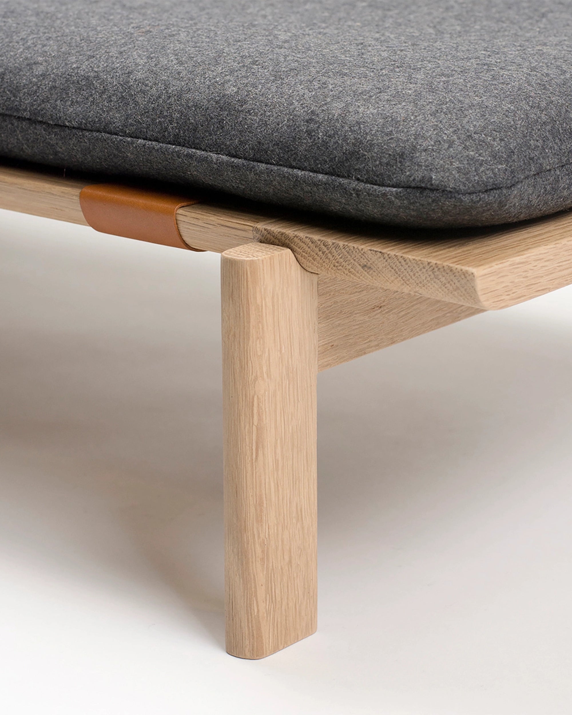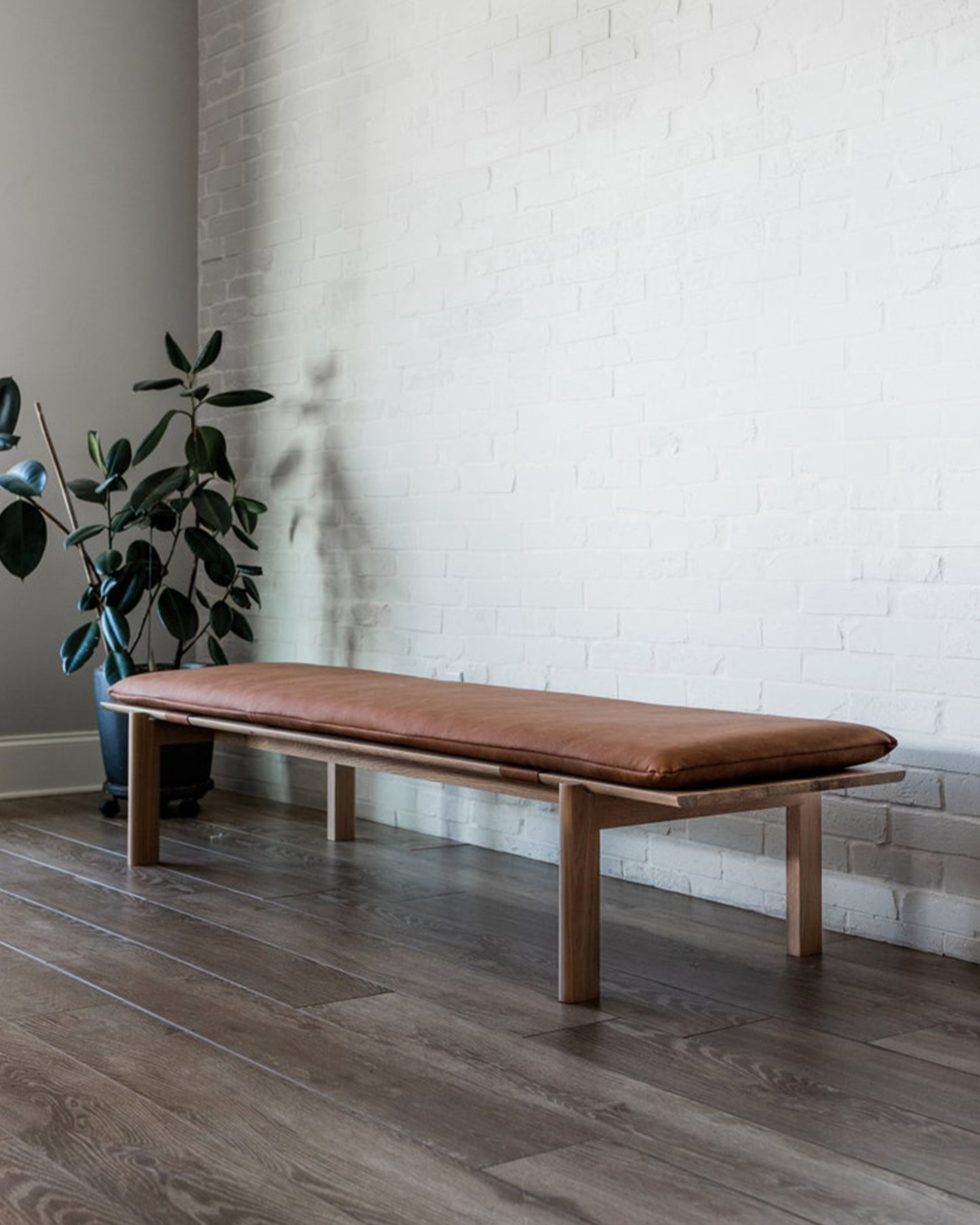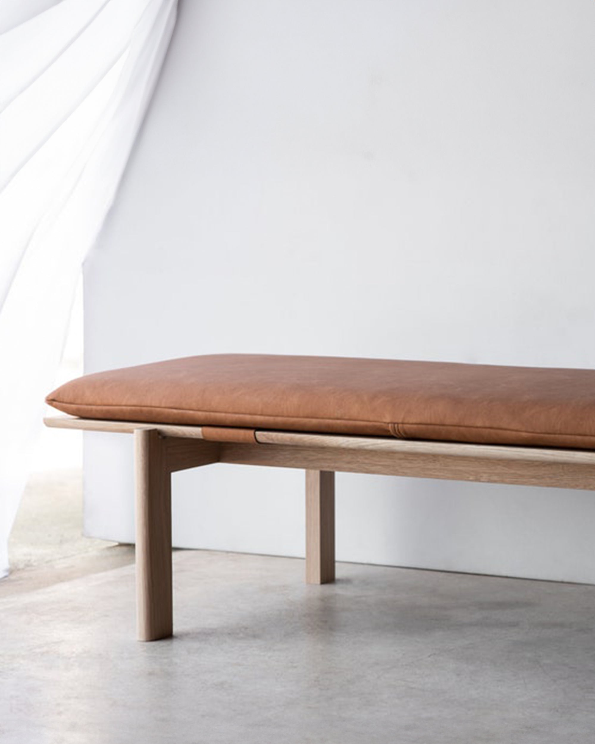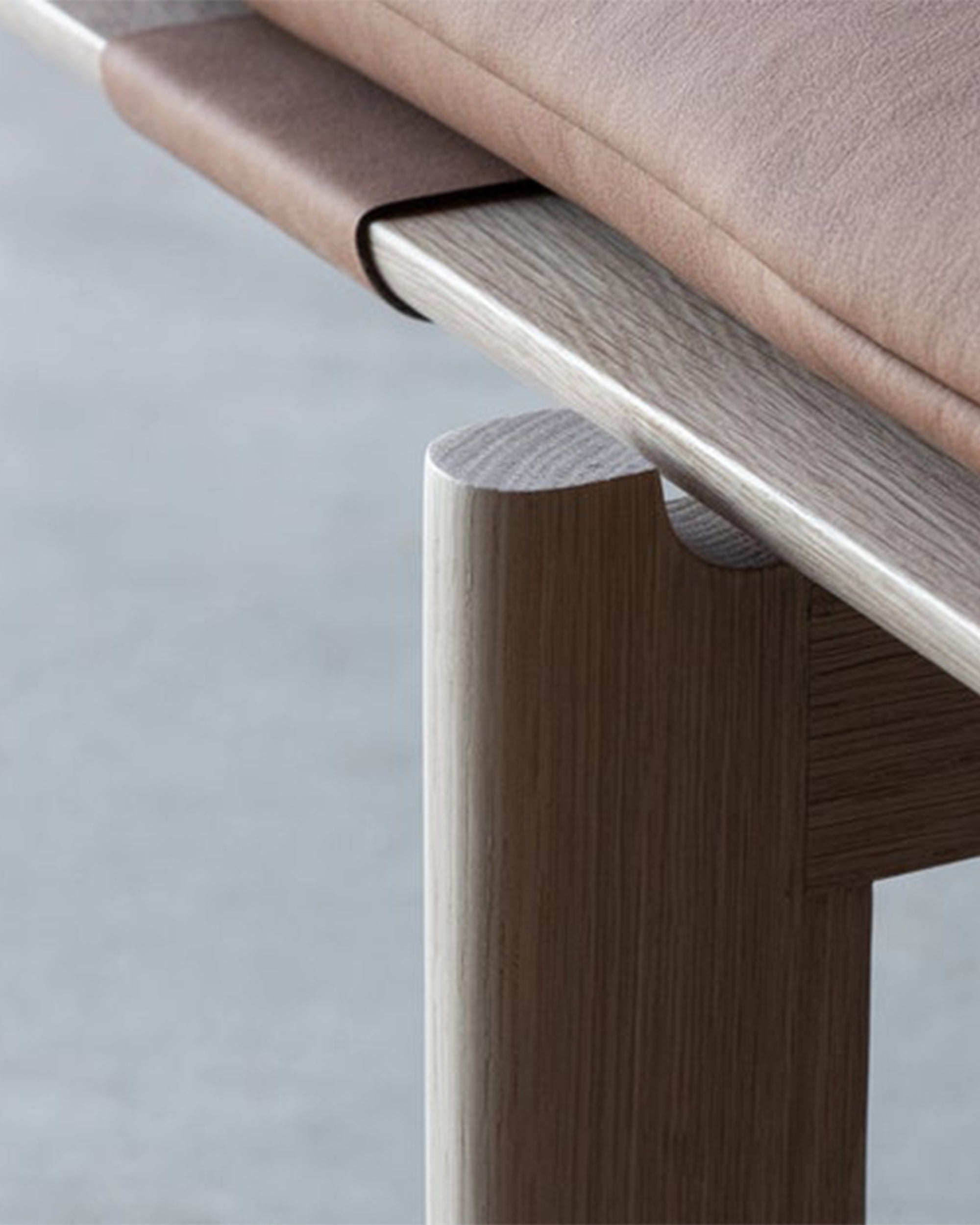Kavisli oturum tablası, Banki Bank’ın tasarımına dinamizm ve hareket katarak, otururken kullanım rahatlığı artırıyor. Aynı zamanda narin ayaklar, bankın zarif ve narin bir duruş sergilemesini sağlarken, deri detaylı minder ise tasarımın lüks ve ayrıcalıklı dokunuşunu yansıtıyor.