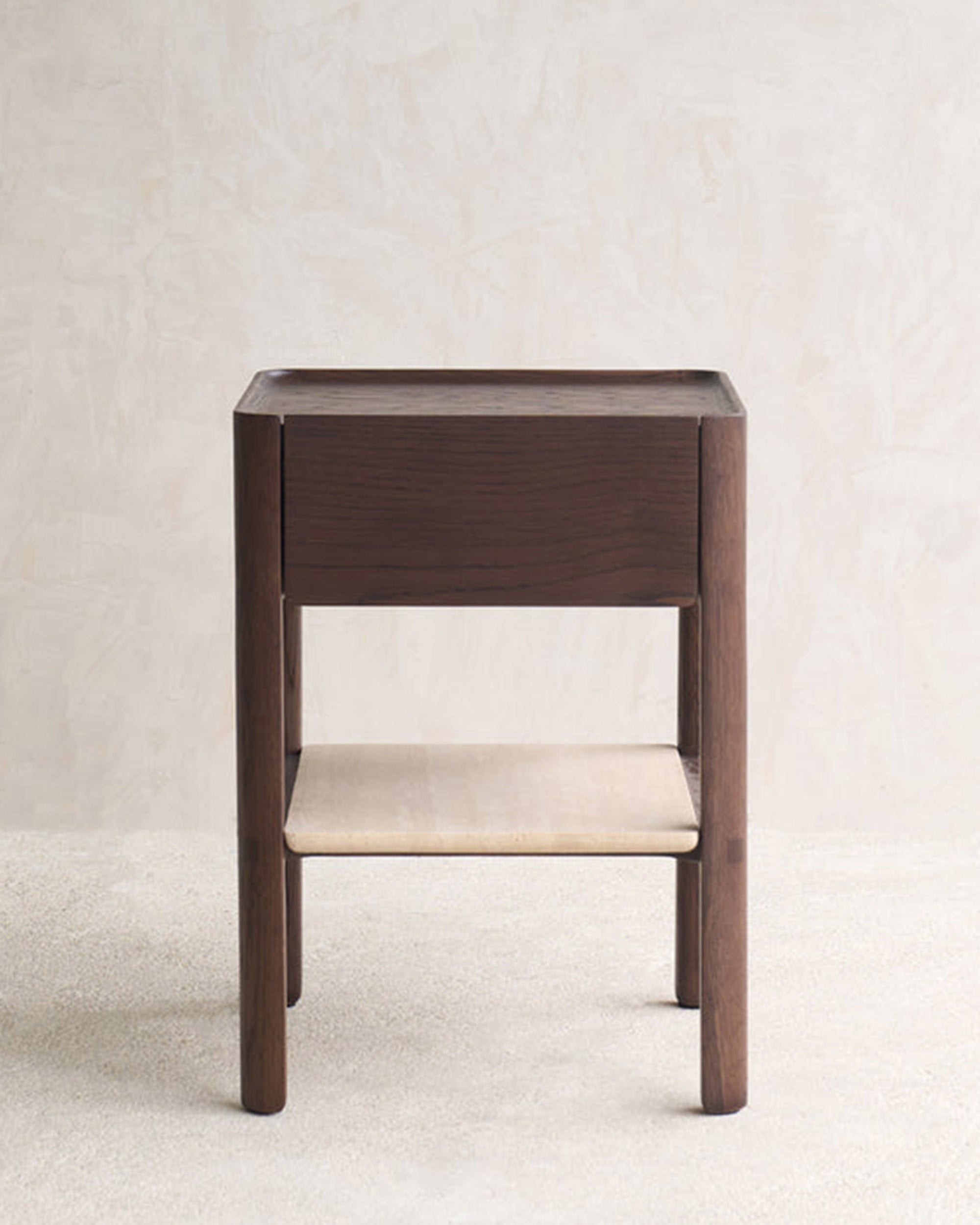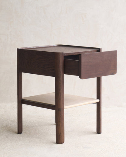 Yuvarlak kenar dönüşlerine sahip ayakları ile Miskin komodin, her türden karyola ile uyum sağlayacak şekilde tasarlanmış özel bir mobilyadır. Tek çekmecesi ve altındaki mermer rafı ile hem şık hem de işlevsel bir kullanıma sahiptir. Doğal ahşap ve mermerin bir arada kullanılması, yatak odalarınıza yenilikçi ve çağdaş bir hava katıyor.