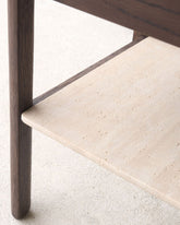 Çekmecesi, günlük kullanımınızı düzenlemeniz için ideal bir alan sunarken altındaki mermer raf da ek depolama alanı sağlar. Bu şekilde hem eşyalarınızı düzenleyebilir hem de dekoratif öğeleri sergileyebilirsiniz.