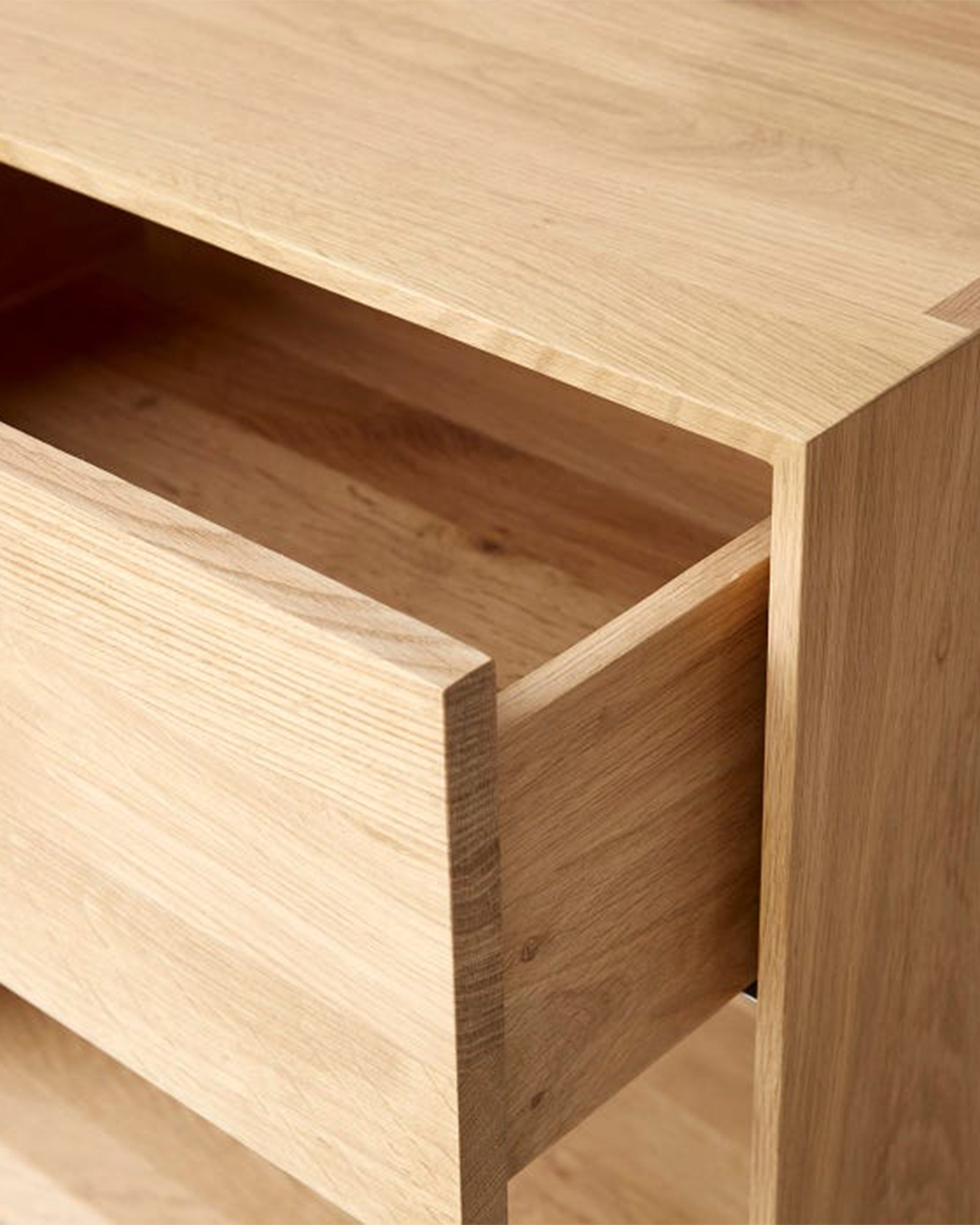 Nayla Komodin’in ana özelliklerinden biri,çekmece yüzeyinde kulp kullanılmamısıdır.Çekmece altında bulunan kendinden kulp ile rahatlıkla açılıp kapanarak tasarımın sadeliğine katkıda bulunuyor.