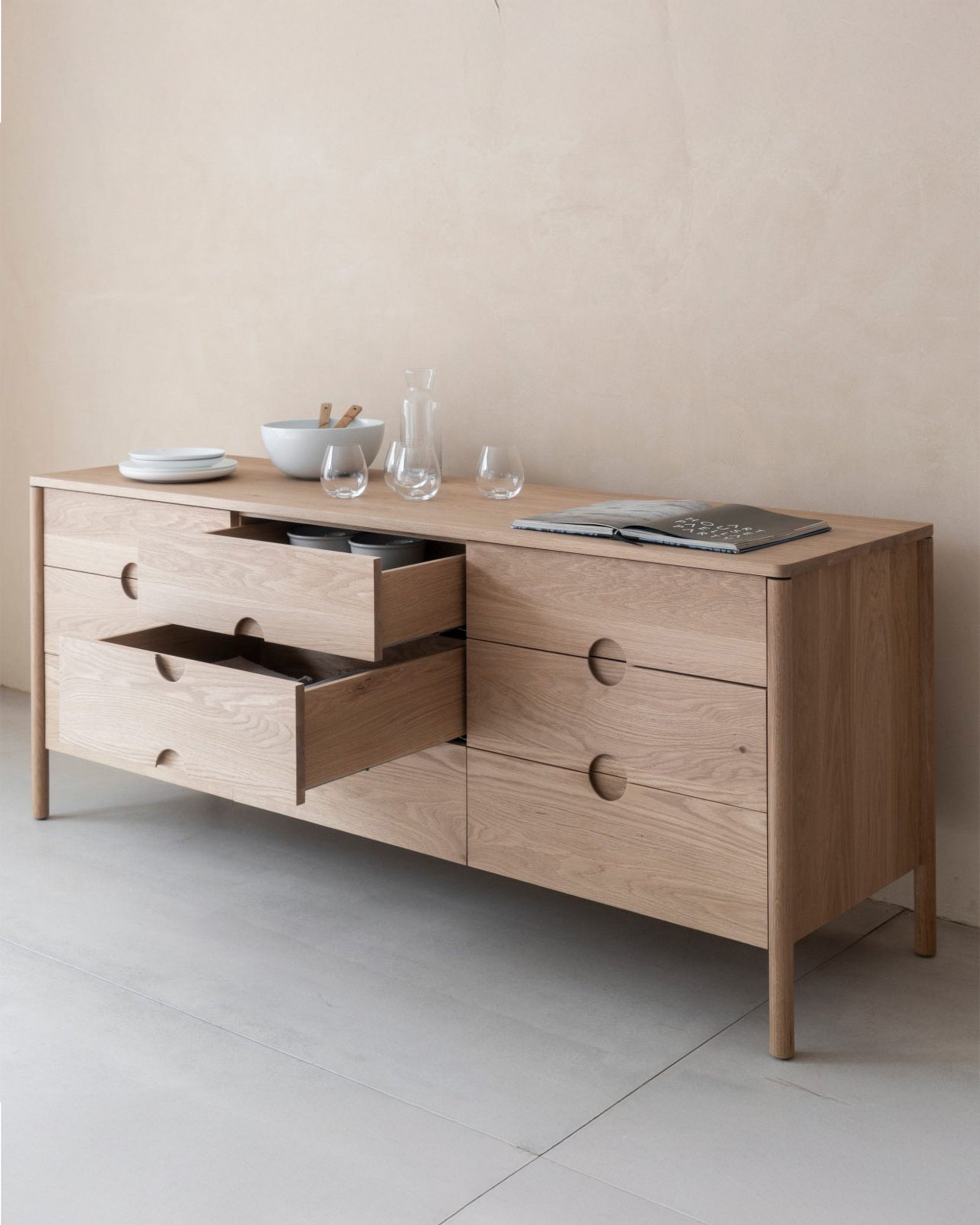 Bolca çekmecesi ile geniş bir depolama alanına sahip olan Amara Konsol, işlevselliğinin yanı sıra üretimindeki el işçiliği detayları ile de bulunduğu alanda gözleri üzerine çekiyor. İnce torna ayakları ve yumuşak kenar dönüşleri, tasarımın temel hatlarını oluştururken yuvarlak kendinden kulp detayları da ürünün estetik değerini daha da vurguluyor.