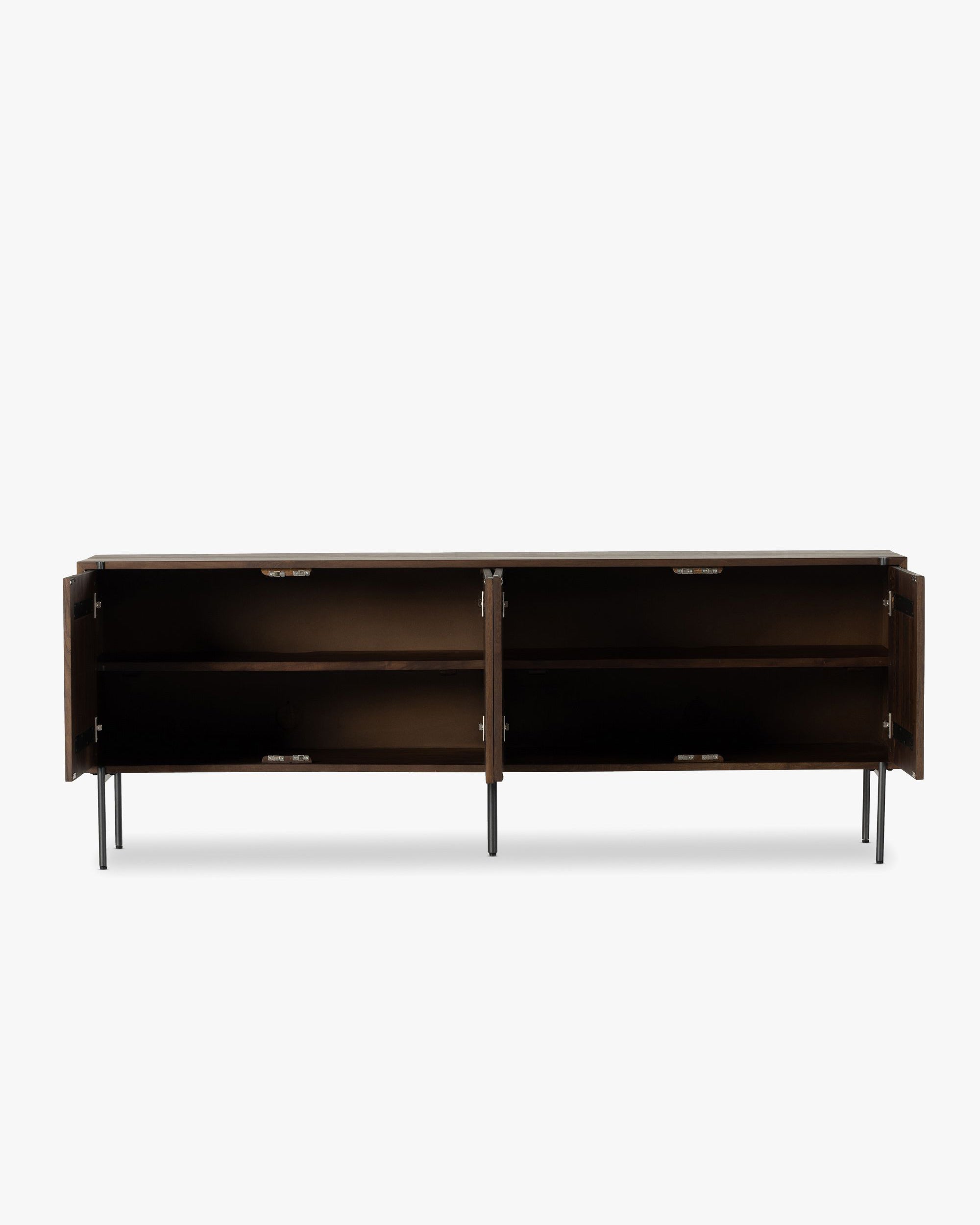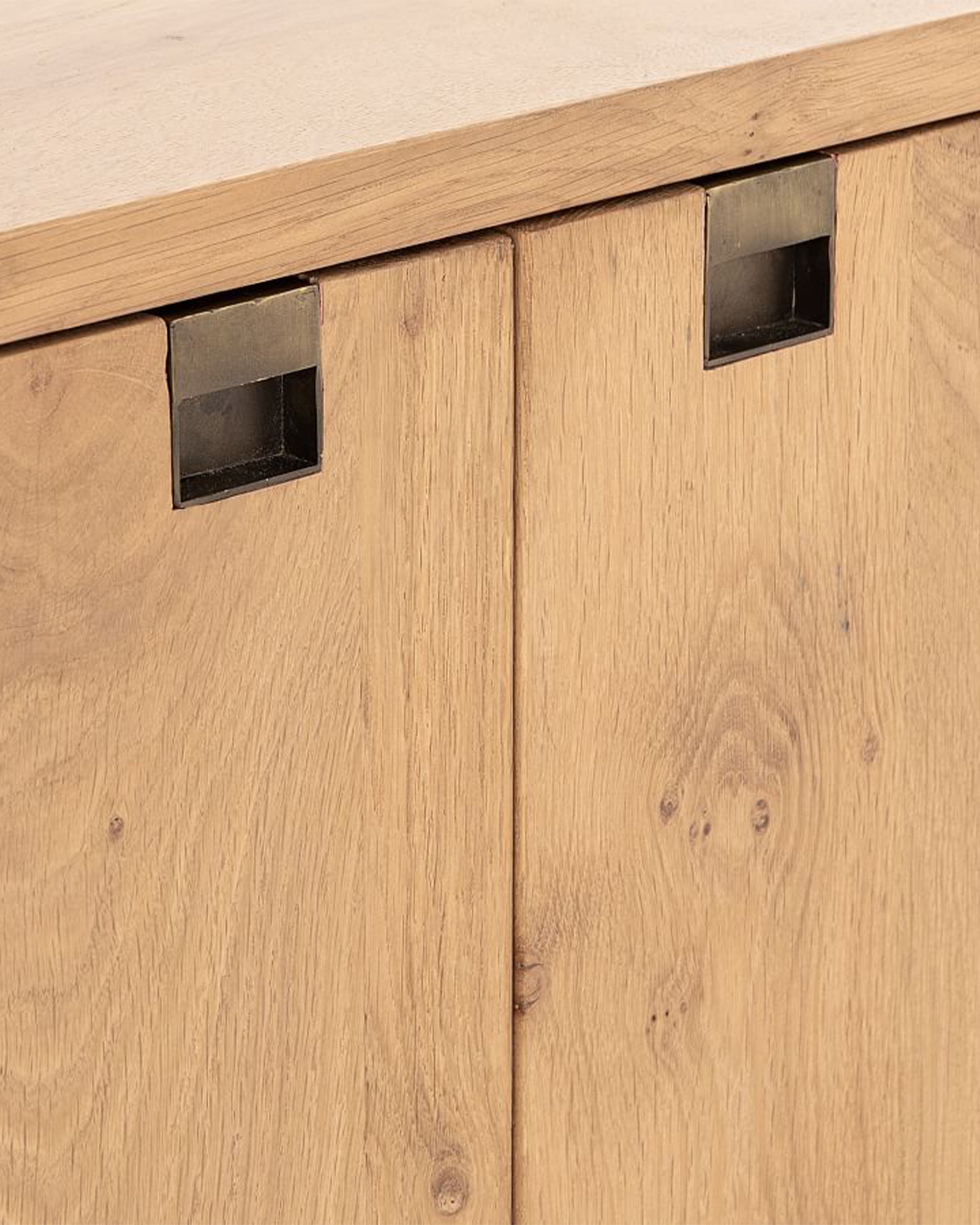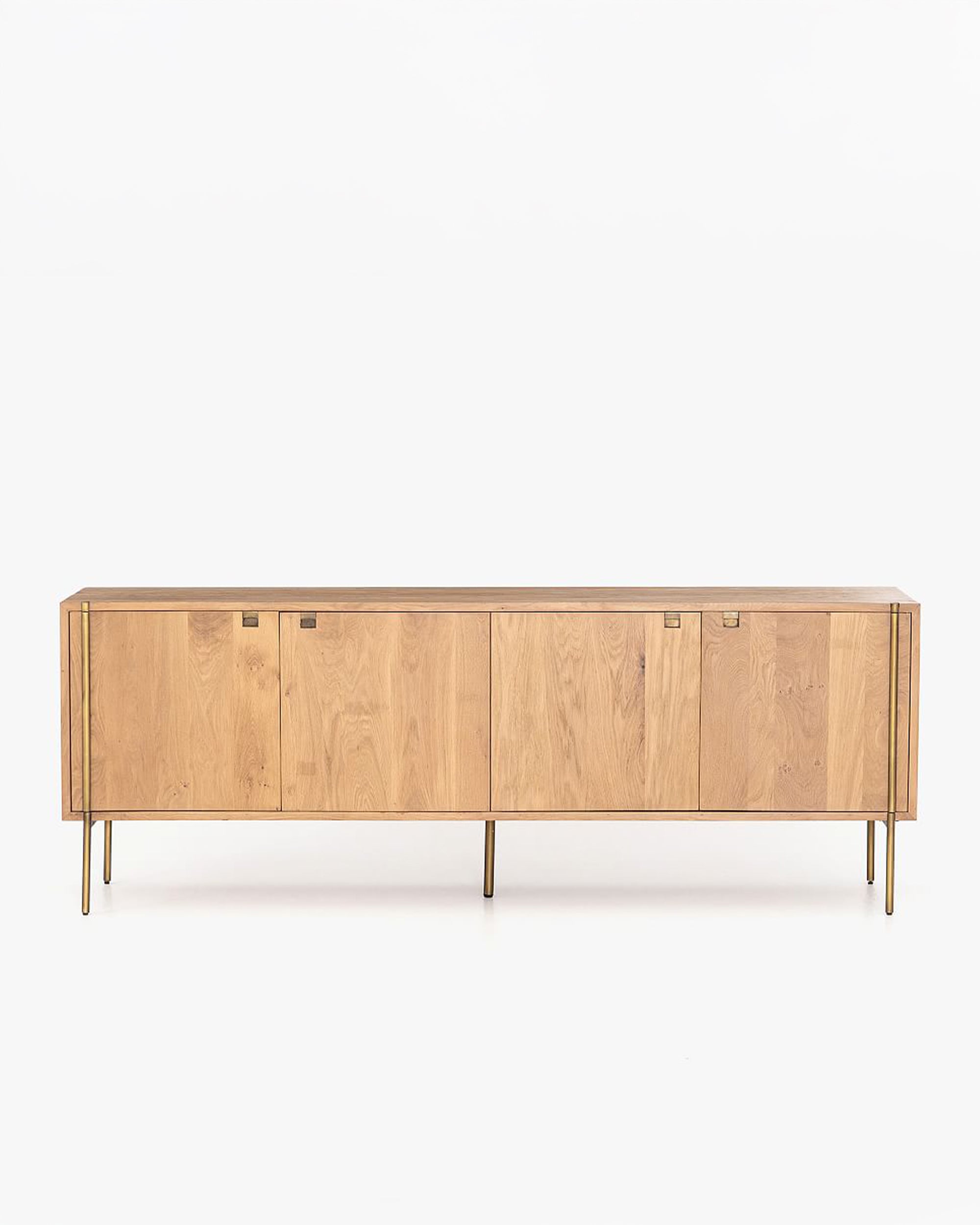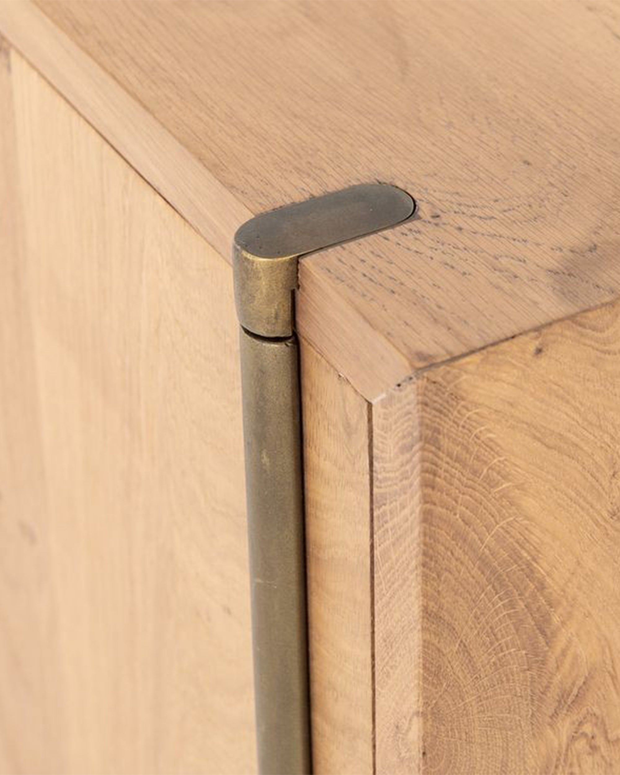 Eskitme pirinç ayakları, tabladan ve kapaklardan geçen zarif pirinç detayları ve kare pirinç kulplarıyla bir araya gelen Matre Konsol, muhteşem bir uyum yakalayarak modern ve klasik çizgileri birleştiriyor.