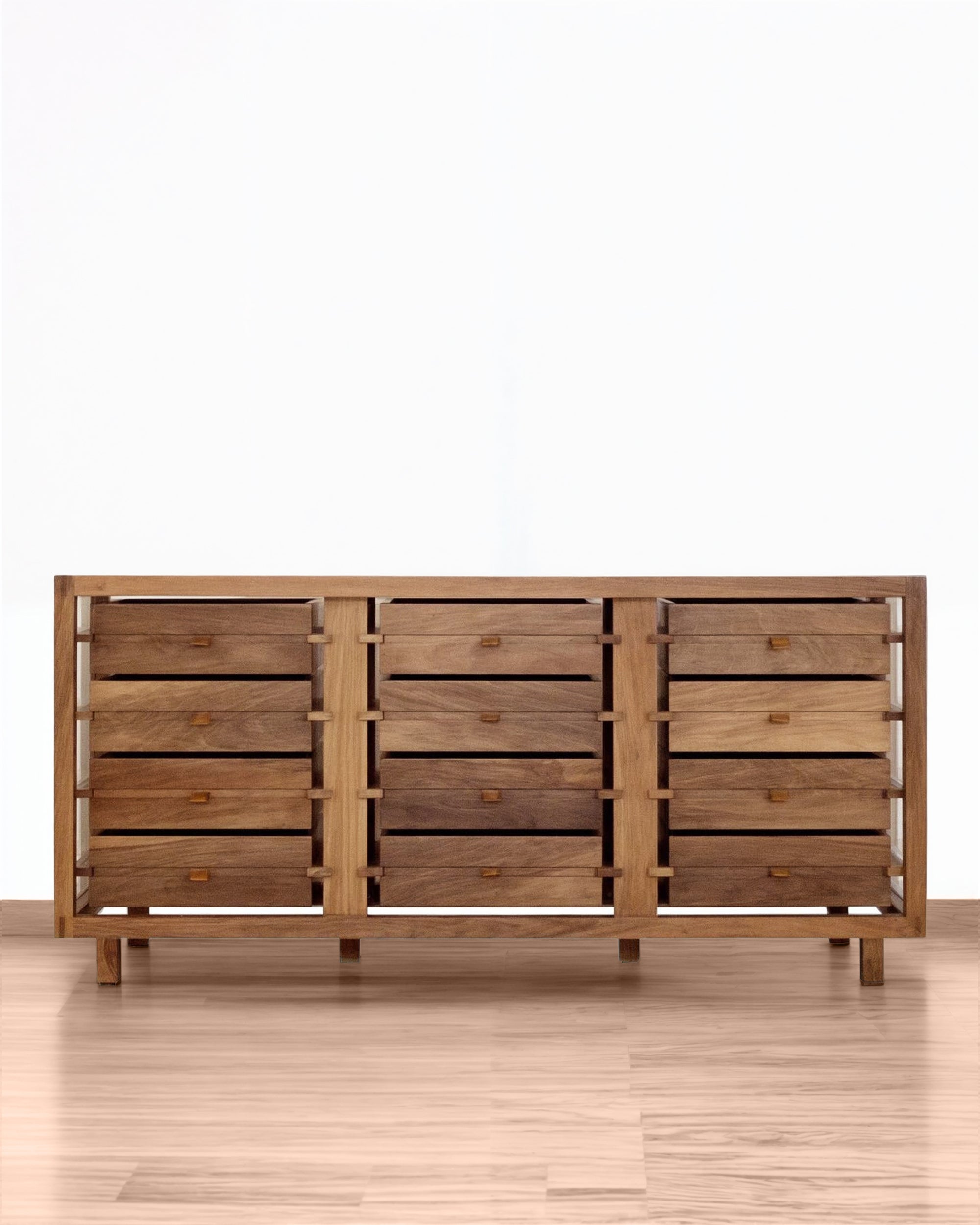 Geleneksel ahşap çıtalı rayların, deri üst tablanın ve deri kulp detaylarının eşsiz bir uyumuyla ortaya çıkan Sem´ya Konsol, benzersiz bir tasarım bütünlüğü sunar. Hem modern hem de retro öğeleri bir araya getirerek zamana meydan okuyan bu konsol, iç mekânınıza özgün bir karakter katıyor.