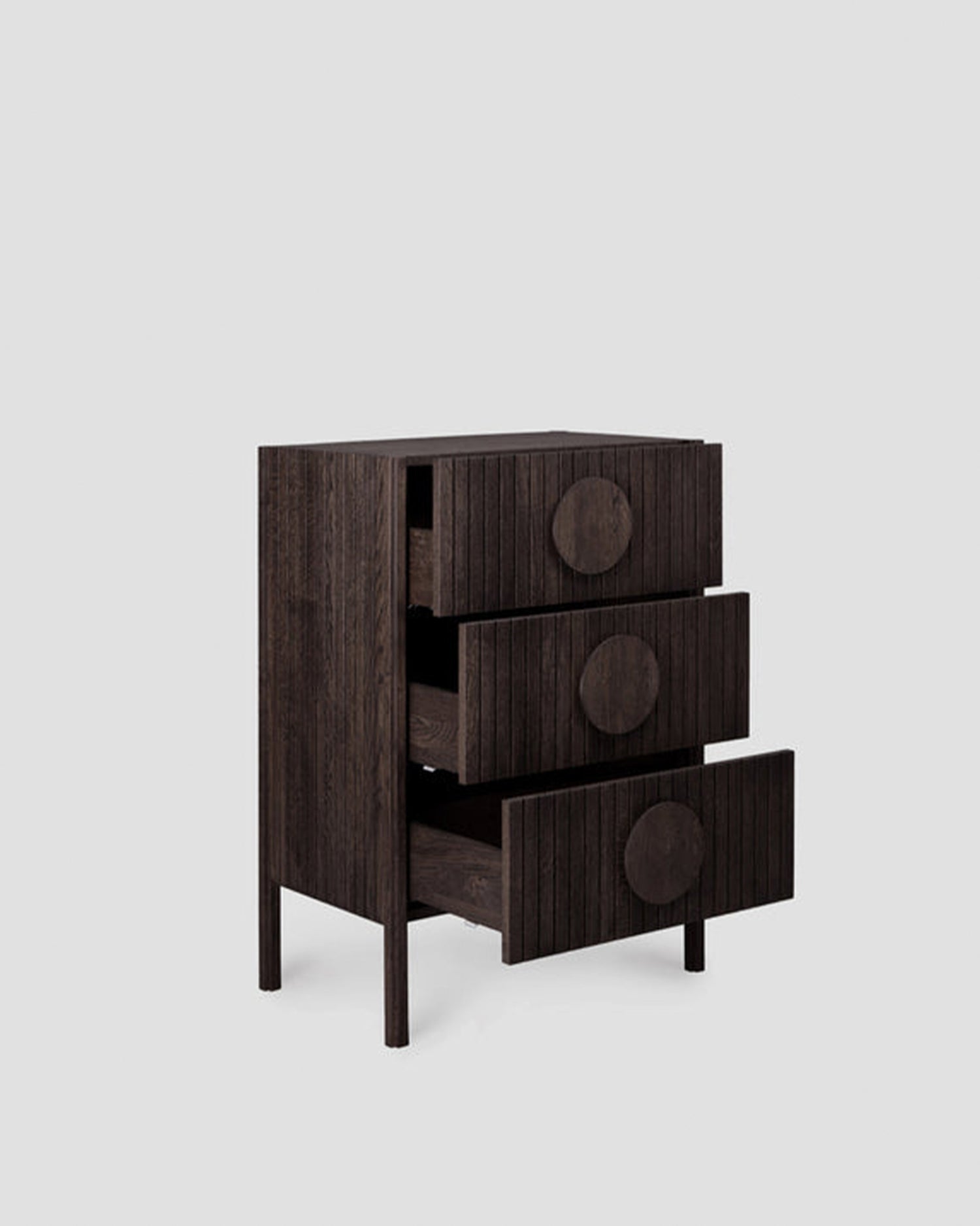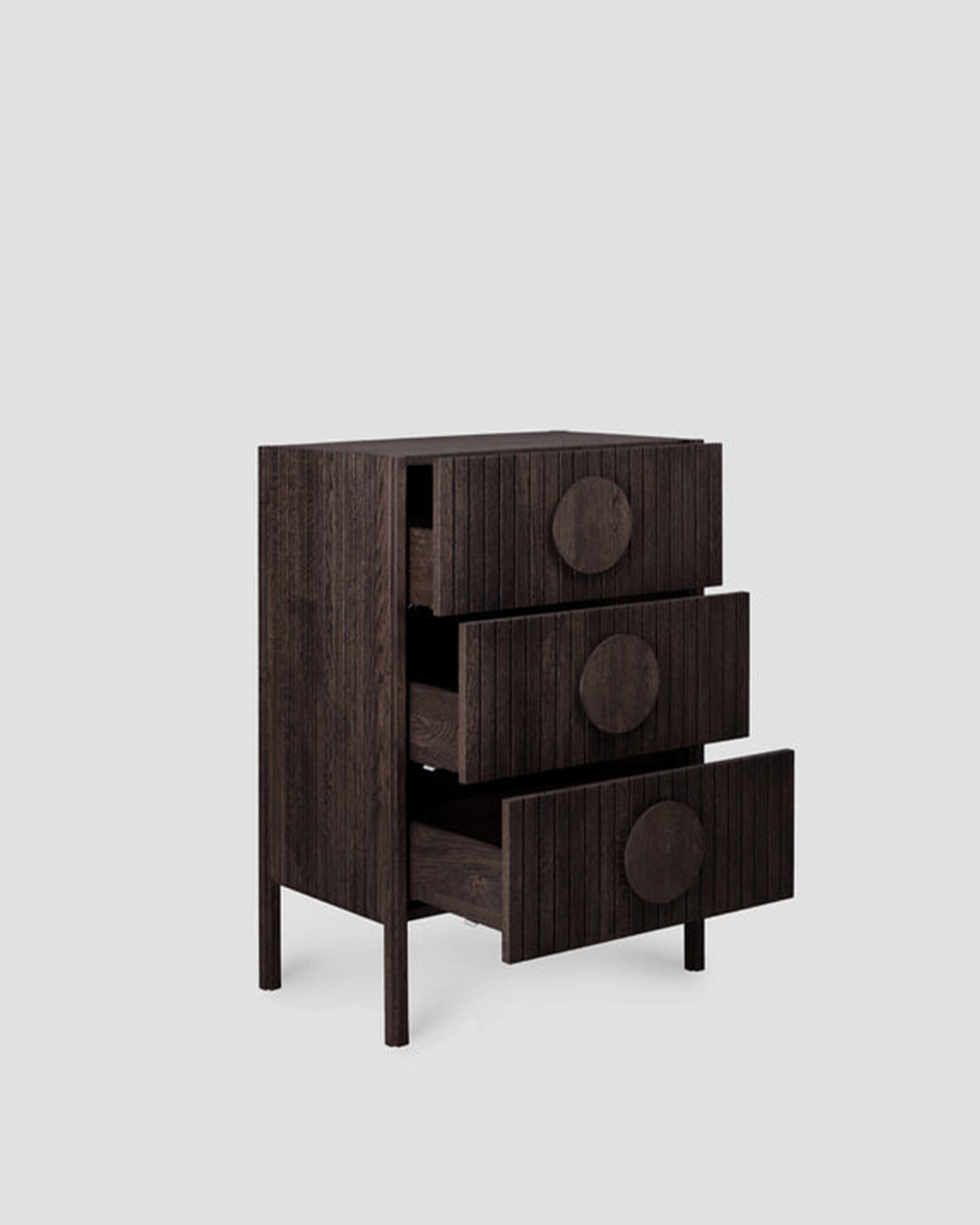 Lola Şifonyer, özgün çıtalı kapak çekmece tasarımıyla dikkatleri üzerine çeken bir mobilya. Aynı zamanda, geniş yuvarlak ahşap kulplarıyla da göz kamaştıran bir estetik sunuyor.