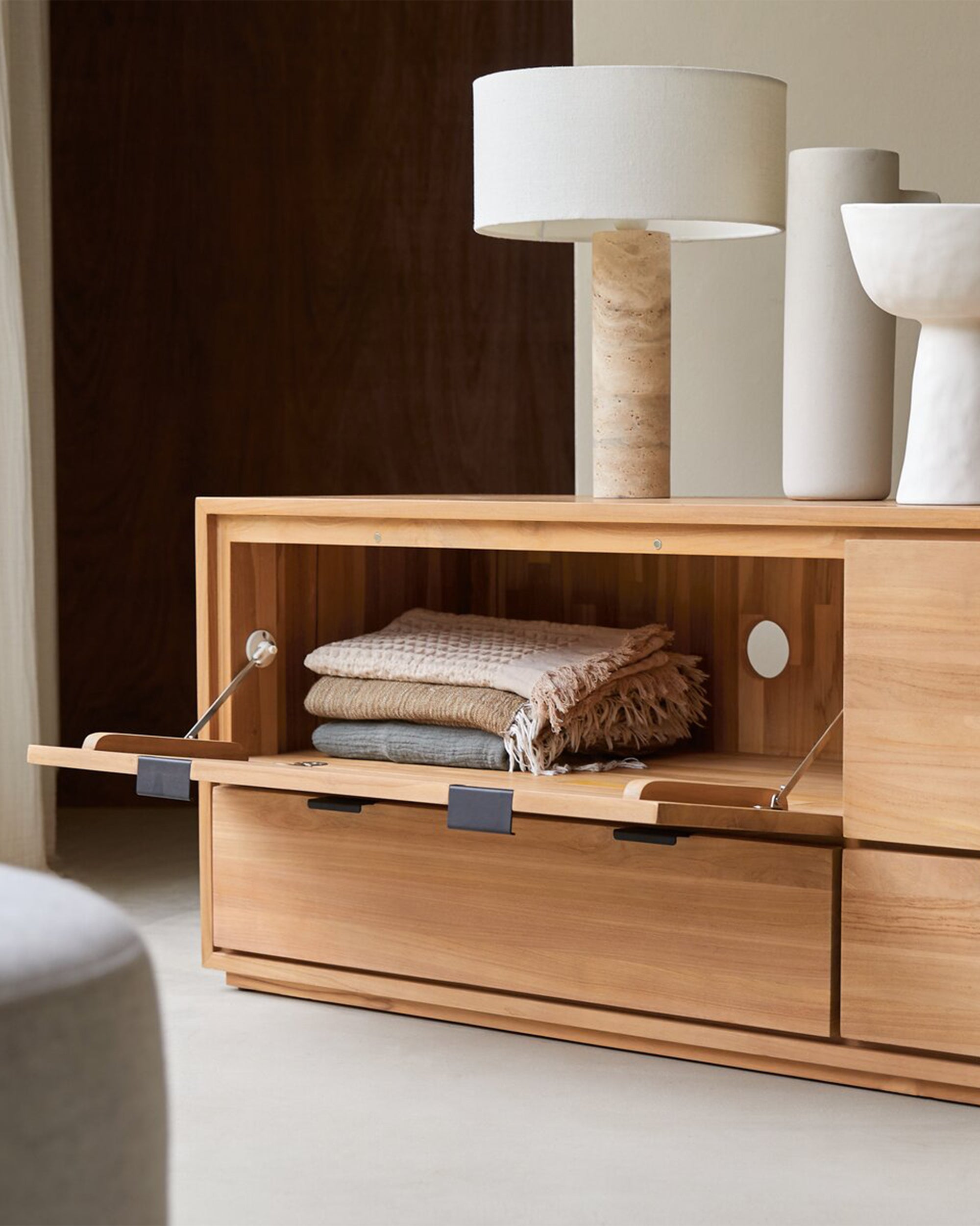 Hanna TV Ünitesi, çeşitli yükseklik ve özelliklerdeki depolama alanlarıyla, kullanım ihtiyaçlarınızı mükemmel bir şekilde karşılarken benzersiz tasarımıyla da bulunduğu her mekana özgün bir hava katıyor.