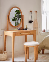 Pirinç ve ahşabın zarif bir uyumunu bir arada sunan Ada Makyaj Masası, minimal tarzı sevenler için özel olarak tasarlanmış bir üründür. Bu masanın öne çıkan özelliklerinden biri, eğimi ayarlanabilir ayna detayı ile kullanım kolaylığı sağlamasıdır.
